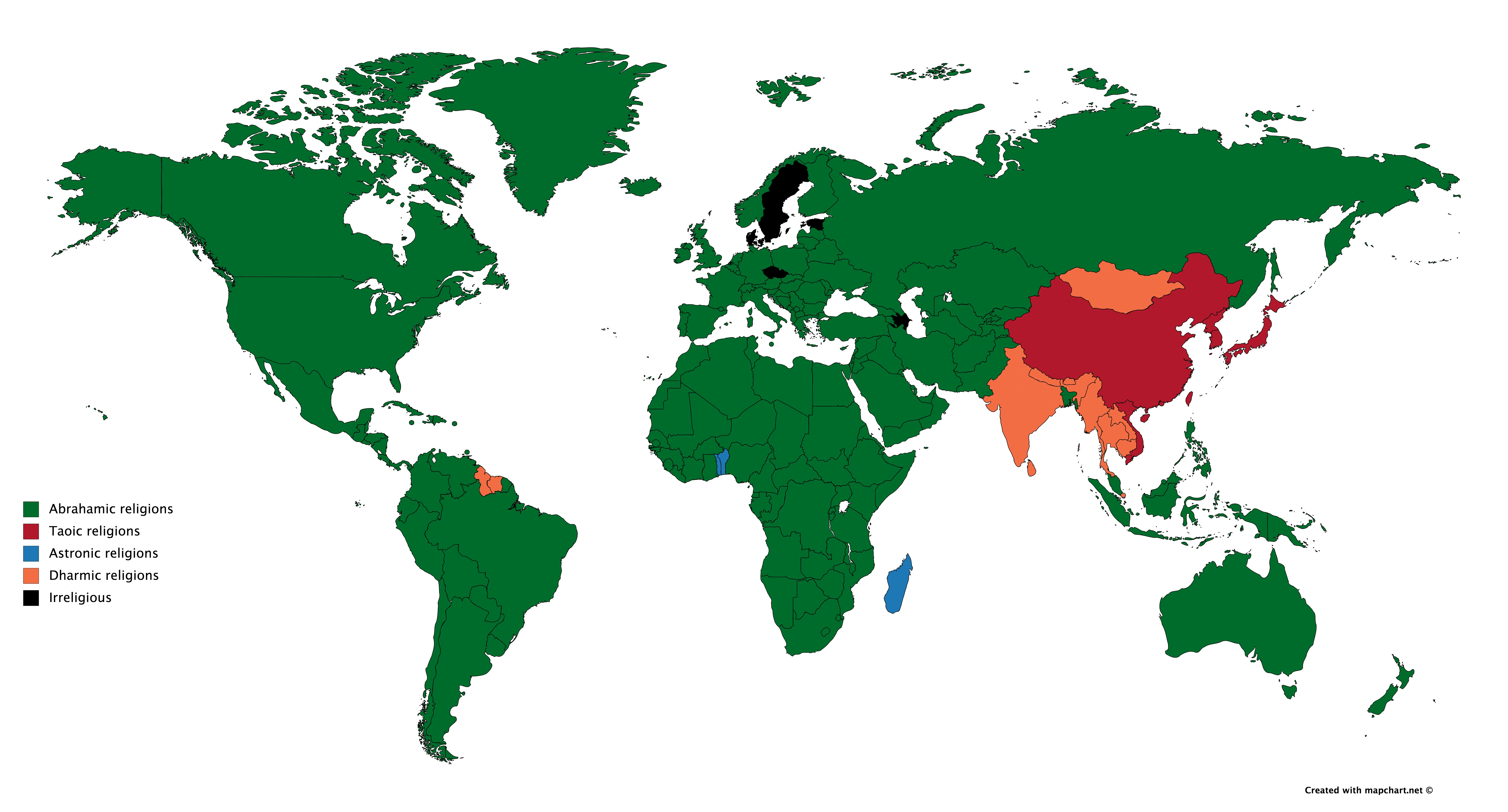 Astronic religions hold a majority in only a handful of countries worldwide, however, the complexity of the study and desigation of what constitutes a follower of an Astronic religion is largely blamed for the cause of this. So is the lack of academic study on the topic of nature religions, astronomical religions, and humanic religions which form the three major aspects of Astronic religions.