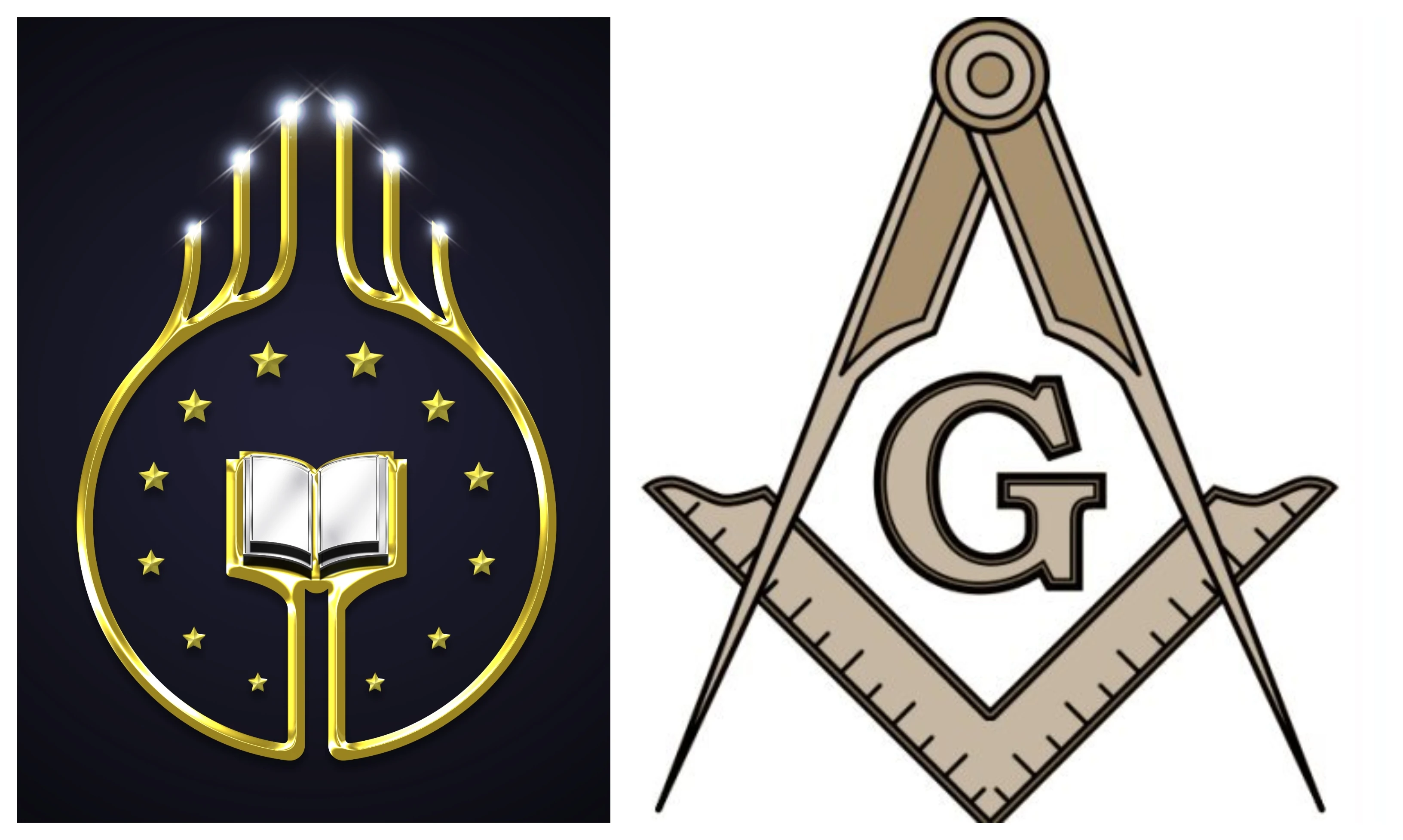 The Vendox, symbol of Astronism (left) and the symbol of Freemasonry (right)